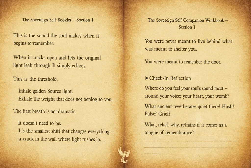 The Sovereign Self Set is a sacred pairing – the Booklet awakens, the Workbook embodies. Together they form a bridge between knowing and becoming – it’s a remembrance dialogue with your soul that evolves each return.